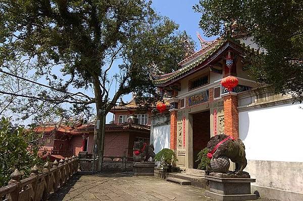 獅頭山山門的紫陽門,是獅頭山中最重要的古蹟,屬穿堂式的獨立門樓,屋頂是重檐歇山式建築,格局巍峨堂皇,兩座巨大石獅把門。