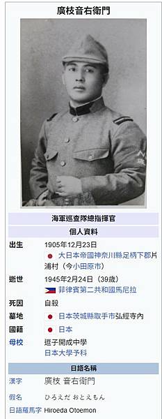1975年,台籍日本老兵劉維添在1975年來此放犧牲自己性命,救助兩千名臺灣青年的日本海軍軍官廣枝音右衛門牌位供人祭拜,每年更與遺族聯繫赴日追悼,後廣枝遺孀於1988年逝世,也將其妻名字列入牌位[17]。這兩牌位各書「天昇院法真活道居士」、「淨蓮院台譽妙往清大姐」牌位,旁邊還立有一塊以日文書寫的木刻歌板[10][17]。小林善紀《台灣論》曾提此事[17]。