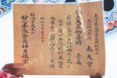 獅頭山與曹洞宗加盟關係之確立,應該是在 1918 年底。1918 年 12月 21 日,曹洞宗大本山下賜「今上陛下禦壽牌」,前一日由大本山專使、台北別院長大石堅童(1868-1934)奉持南下: 奉安於南莊支廳下之名剎獅頭山勸化堂的今上陛下禦壽牌,二十日由臺北曹洞宗別院大石堅童師奉持,僅曹洞與臨濟兩宗曾對所屬加盟聯絡寺廟下賜「禦壽牌」,一方面表示十分重視該寺廟,另一方面則是具「皇國佛教化」象徵意義。雖然獅頭山全山幾乎都加盟曹洞宗,但是,亦有例外,如金剛寺在張妙禪(1886-1965)住持後可能已屬臨濟宗,因為張妙禪曾被京都臨濟宗大本山授予開教師之職