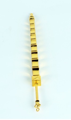 尺寸:杖通長134.8釐米,徑1.4釐米,杖首圓盤直徑5釐米