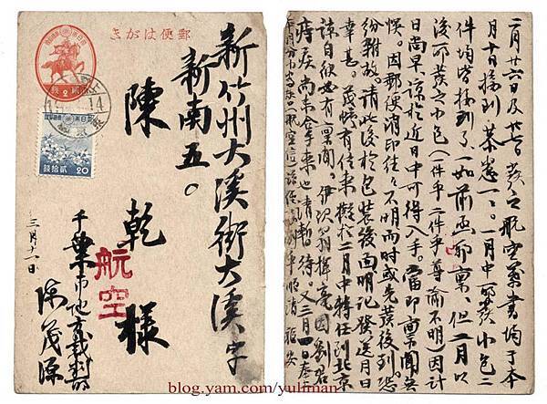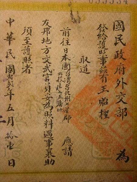 1933年辦理的中華民國到日本國台灣的護照(China)→(Japan -Taiwan)