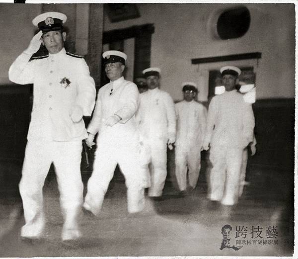 長谷川總督來台中州廳視察--長谷川清總督夏天來台中州廳視察,陳耿彬先生於室內低角度B快門,用鎂粉打鎂光,用B快門攝影,不只用心更要不驚動長官,要點燃鎂粉時,都要有相當的默契,除了相機快門速度之外,與助手的默契更是重要,有趣的是,要在總督面前這樣點燃鎂粉拍攝,也不容易呢。
