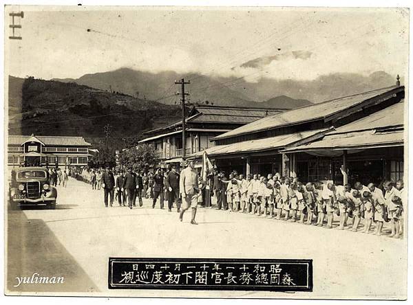 長谷川總督在州廳台階接受神輿祝賀--地點位於台中州廳-中間是長谷川清總督,來台中州廳受到學生拿神輿祝賀,後來日人回去時,只有長谷川清不是戰犯,台灣人有需要跟日本政府協調都會尋求長谷川清。