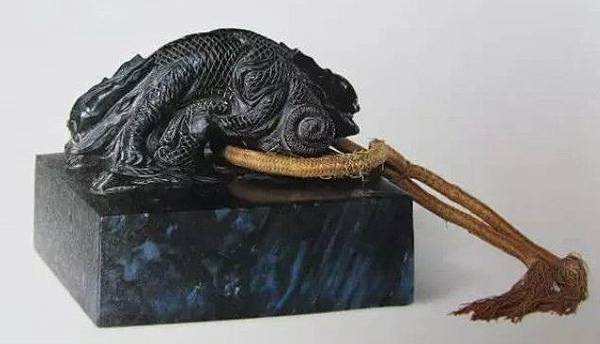 欽文之璽:《交泰殿寶譜》以重文教之用,墨玉質,交龍紐。