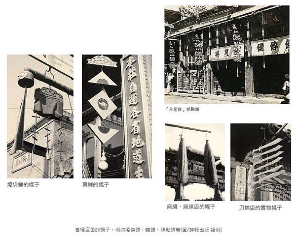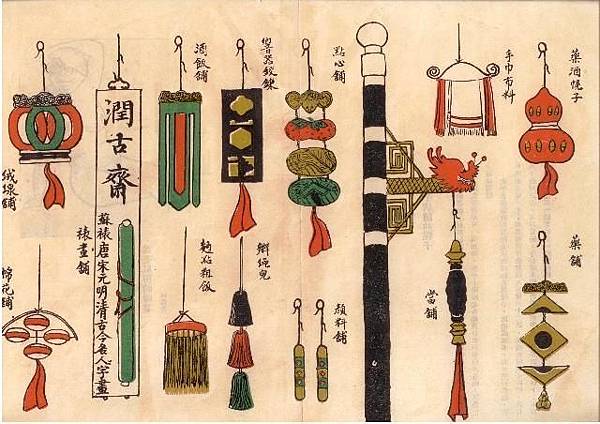 各種店面的幌子,例如煙袋鋪、藥鋪、糕點鋪等(圖/時報出版 提供)