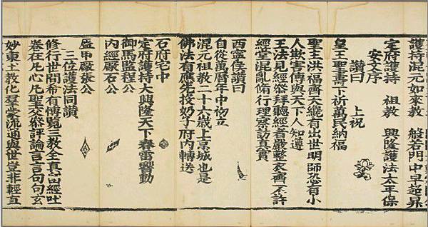 至於明代中末葉以後,民間秘密宗教之所以能夠大量撰寫刊行寶卷緣由,有部份原因系它們得到上層社會的經濟援助有密切的關連。 由於有些教派能夠能得皇親貴族的支援而得到靠山,有些教派則是得到太監的信奉,他們因而提供教派充分資金與印刷條件8。 例如紅陽教教首飄高祖師於萬曆年間進入京城之後,即竭盡所能地結交內廷太監,諸如禦馬監程公、內經廠石公、盔甲廠張公等人。 紅陽教透過內經廠石公的協助,使其經卷得以在內經廠刷印,故該教印造的經卷種類甚多,數量龐大,而其印刷裝幀更是精美考究。 這類由內經廠特製的經卷,不僅有黃色龍圖錦缎封套,其內經文多為大字摺裝本,墨色清晰,紙地厚實,並書寫對皇朝、皇帝的讚頌文字,附有描繪行功入道情景或歷史故事的版圖,堪稱寶卷中的精品