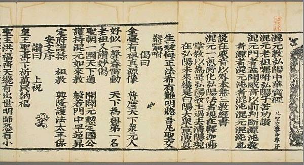 (臣)即同赴高海莊清修觀,先在大殿樓宇及各房搜查,見有經卷一本,簽寫「銷釋混元紅陽大法祖明經」字樣,該委員等以既有刷成經卷,其板片收存何處,向該道士明雲訊問。 據供此項板片現在南鄉廟內存貯,當即帶同前往南鄉,果於廟內起出板片十九塊。 訊據該道士供稱,此項板片流傳已久,前因官差搜查紅陽教經卷,恐致起出被累,故將板片收藏南鄉廟內,並無習教傳徒情事....此項板片系兩面刊刻,大小十九塊,載有「山東濟南府德州河西高海莊清修觀刊」及「康熙三十六年孟夏吉旦」字樣。 與現起混元紅陽經一本核對,篇頁次第均相符合,其為原板無疑。 78