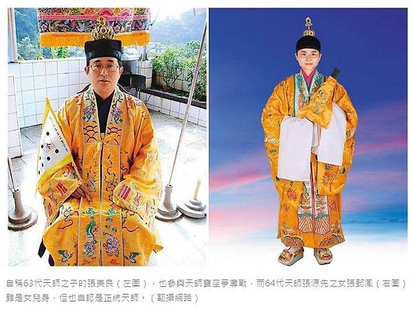 自稱63代天師之子的張美良(左圖),也參與天師寶座爭奪戰,而64代天師張源先之女張懿鳳(右圖)雖是女兒身,但也自認是正統天師。(翻攝網路)