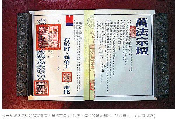 張天師發給法師的證書都有「萬法宗壇」4個字,每張證萬元起跳,利益龐大。(翻攝網路)