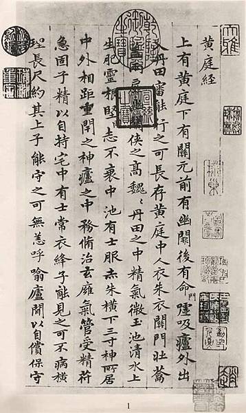 魏夫人定本的《黃庭內景經》簡稱《黃庭經》,是早期道教重要的經典之一。 它是七言詩的形式描述人體臟腑功能,以三丹田與黃庭宮為樞紐,存思黃庭,煉養丹田,積精累氣,以求長生。 內中所談到的人體生理,多與中醫學相通,其獨到之處,尤其是重視大腦的作用,確與現代科學不謀而合。
