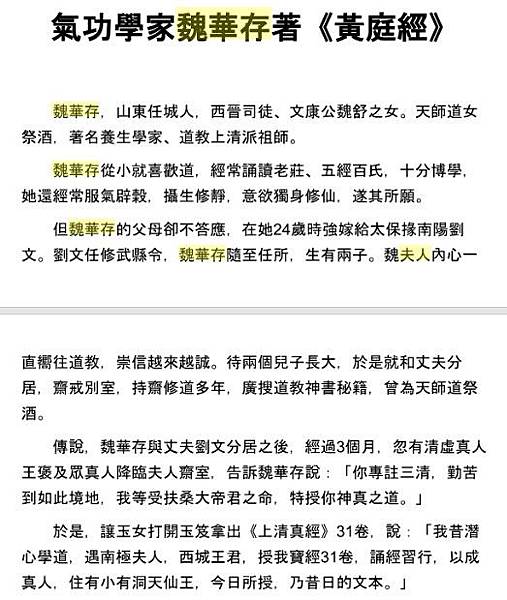 總之,《上清經》之行世,是由魏夫人傳授或降授,故後來魏夫人被上清派尊為第一代宗師。