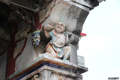 子牙身旁的童子抓著一條大魚,喜盈盈的望著來人,匠師這樣的佈局似乎是透過童子在暗示「願者上鉤的大魚來了」,圖上方文武官員分立,一旁的手拉車正是「文王拉車八百步,周朝國祚八百年」的重要道具。整幅作品主題明確,讓人一看了然,也分外能引起心裡的共鳴。 麻豆護濟宮 @ 湊陣拜媽祖 :: 痞客邦 ::