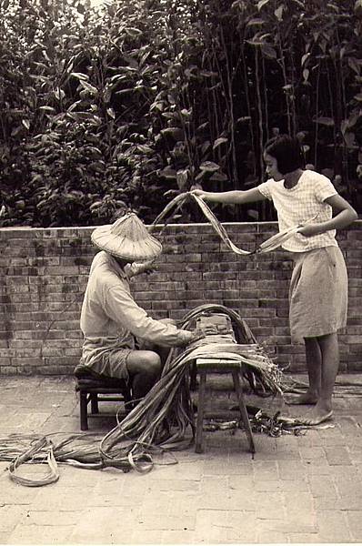 圖一, 三 ,村中婦女閒暇之餘, 採收整理 黃麻 補貼家用, 地點位於張家林家之間靠山邊圍牆下。