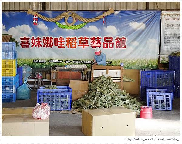 喜妹娜哇是全台僅存的一家稻草織廠。 走進喜妹娜娃,稻草香撲鼻而來,讓人內心平靜安穩。 「喜妹娜哇」是日文「注連繩」的意思,稻草編織採用 的是尚未結穗的青綠色稻草,味道極重,用來編織成各 種飾品,看起來典雅大方,聞起來又能身心暢快,在日 本是避邪祈福的飾物,因此成品主要外銷至日本。 近來因為不敵中國、越南的代工業,台灣多家稻草編織 廠紛紛歇業,喜妹娜娃決心轉型,第三代老闆蔡佩汶從 母親手上接下棒子,以觀光產業重新出發。