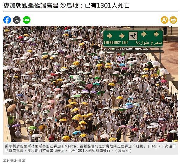 麥加朝覲遇極端高溫 沙烏地:已有1301人死亡 - 國際 - 自由時報電子報 https://bit.ly/4eC35Ru