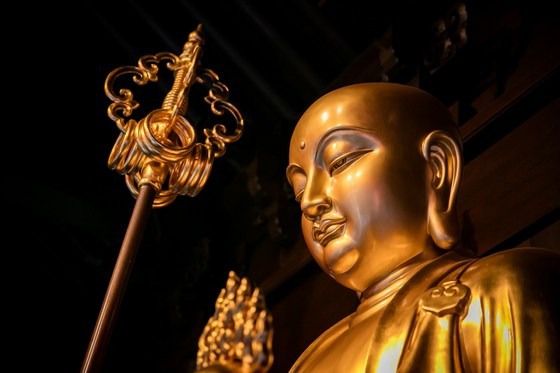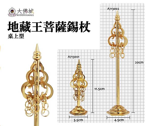三、作為護法增威的法器,錫杖還是許多佛菩薩手中持物。如千手觀音四十手中,有一隻手為錫杖手, 表示慈悲覆護一切眾生;地藏王菩薩也是手持錫杖,表示金錫震開地獄之門,令更多的地獄眾生得度。