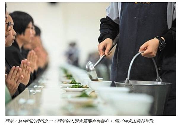 行堂,是佛門的行門之一,行堂的人對大眾要有供養心。 圖/佛光山叢林學院