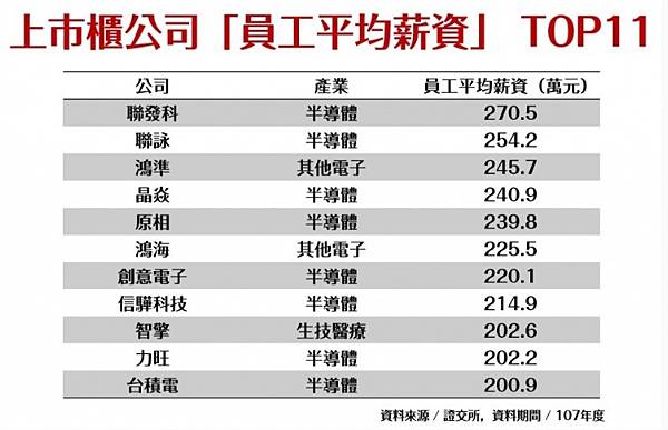 上市櫃公司員工薪資行情揭露!鴻海、台積電、聯發科的員工,平均薪水領多少? | 經理人 https://bit.ly/2yQv29b