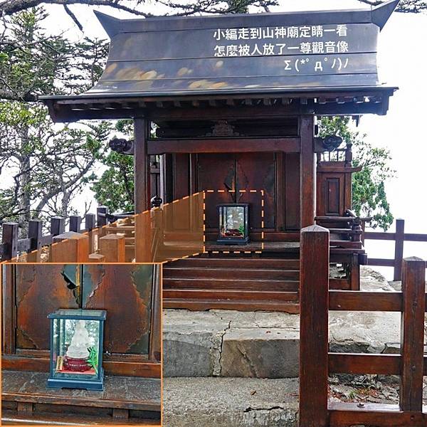 玉山國家公園西峰有座全台最高山神廟,惟近期卻被人放置一座觀音像,現已被玉管處撤下