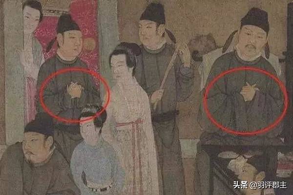 這種手勢是叉手禮,在唐宋時期也盛行過這種禮儀,使用的時候左手抱於右手大拇指,左手小指沖向手肘,右手四指平直,拇指上翹,看起來是非常麻煩,不過當時人們都經常使用,自然就都習慣了,可以通過下面兩張圖片對比下。