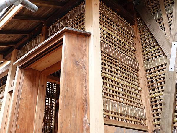 本次修復工程也特別邀請4位經文化部認可的大木作修復匠師參與,擅長木構件軸組組立的陳建華先生、尤財發先生、施慶忠先生、鄭文玲小姐,經過審慎評估和討論,在現場設置木料加工區,針對建築群中各式大、小木作進行修補工程,也盡力保留舊有的木料,並針對損壞或可堪使用的部位,選擇原材質或合適的木料配合環氧樹脂做修補,並安裝回復原位。