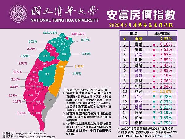 公布2020年5月【縣市】清華安富房價指數 HPI of AIFE has been launched on June 24, 2020.