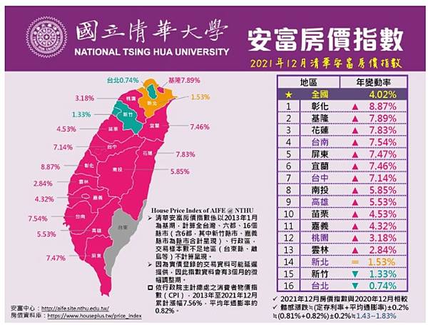 公布2021年12月【縣市】清華安富房價指數 HPI of AIFE has been launched on February 17, 2022.