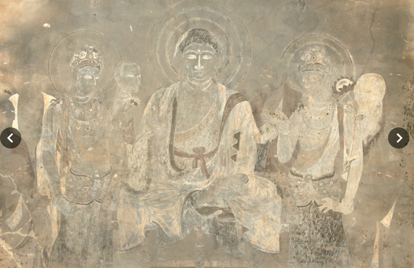 1 號壁畫《釋迦淨土圖》部分細節。(圖片來源:朝日新聞)