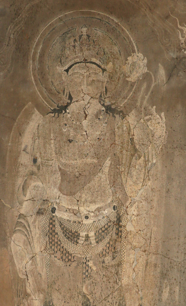 12号壁の十一面観音菩薩像。密教の観音像を描いた作品としては国内で最も早い例という=2015年撮影、奈良県斑鳩町の法隆寺.png