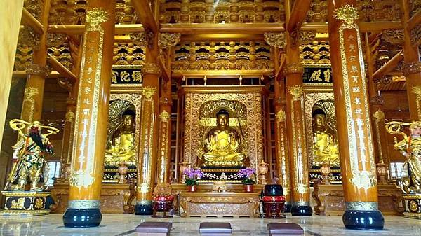 以純台灣檜木建造,大仙寺除大雄寶殿、小山門等建物,在民國七十四年由內政部公告為三級古蹟外;原有供奉釋迦牟尼佛、阿彌陀佛及藥師佛的三寶殿,因建物殘破,決議重建,耗時長達十四年興建,三寶殿的木構施工均以卡榫接合,全程不用一根釘子;而撐起三寶殿的一百零八根檜木,建築雄偉氣勢非凡。