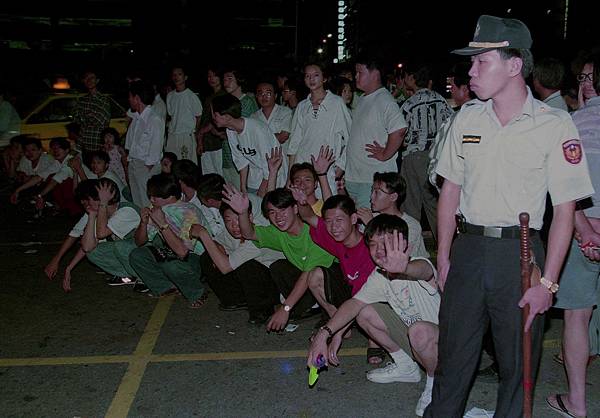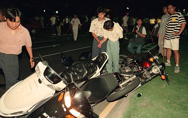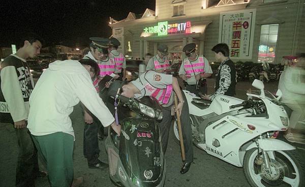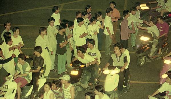 6月初的某日辦公室,社會組文字記者周庭慶跟我說,可以支援攝影嗎?他說雙十路飆車族很熱鬧,很壯觀。就這樣每逢周六、日晚上,我就揹著相機到雙十路報到上班,假日的家庭活動泡湯了,這讓老婆小孩很抱怨,一直持續到7月中,飆車族遭警方瓦解,才告終。
