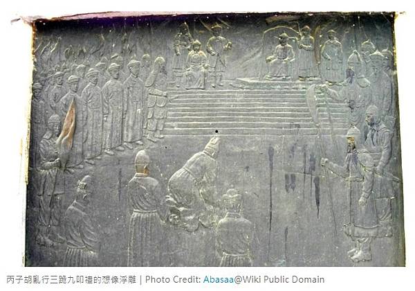 丙子胡亂行三跪九叩禮的想像浮雕|Photo Credit: Abasaa@Wiki Public Domain