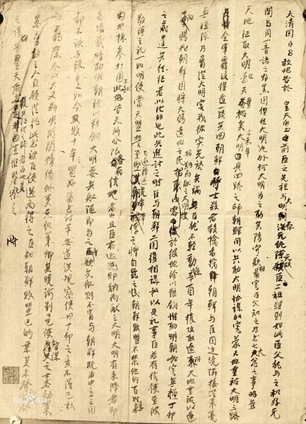 這塊碑的的確確是韓國人為清朝皇帝所立,用來歌功頌德表達忠心的。這要從明朝末年說起,崇禎年間由於女真人的強大,明朝實際上喪失了對藩屬國朝鮮的控制。不過此時的朝鮮王朝還是效忠於明朝的,後金皇太極曾派人到朝鮮,找到朝鮮當時的國王仁祖大王,要求朝鮮一起派兵攻打明朝。