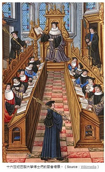 十六世紀巴黎大學博士們的聚會場景。(Source:Wikimedia)
