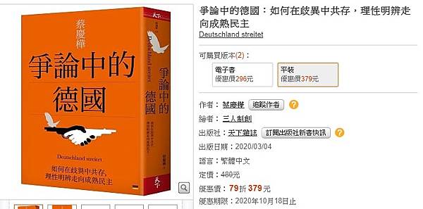 蔡慶樺,《爭論中的德國》,臺北:天下雜誌 ,2020。