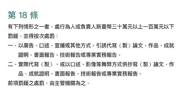 管碧玲指《學位授予法》第18條自2013年修法提高論文代寫罰款以來,教育部僅開罰1件。論文代寫7年僅開罰1件 管碧玲批教育部執法消極 https://bit.ly/2WSrgVm