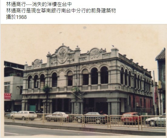 台中後火車站因為日治時期有中南線鐵路,將台中與南投的貨物進行運輸,也因此使得物流業蓬勃發展,當物流業主發展到一定程度後,也會對自己的商店街屋進行改建,以當時的建築風潮來說,會常常興建起美輪美奐的巴洛克式街屋,如正在裝修的文青果(陳文明故居),如今這棟街屋可以說是復興路的「顏質擔當」!不過在日治時期,曾有一棟街屋論規模與華麗的程度皆勝過文青果,便是今位於台中市東區復興路四段53號的林通商行。