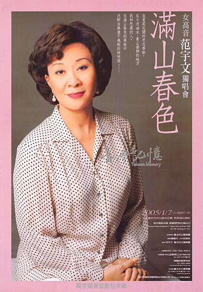 范宇文音色清澈甜美,舞台經驗穩健,自1988年與上海歌劇院合作,獲各界好評後,她有了更多的兩岸交流機會。
