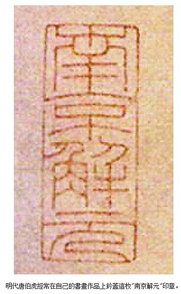 明代唐伯虎經常在自己的書畫作品上鈐蓋這枚"南京解元"印章。