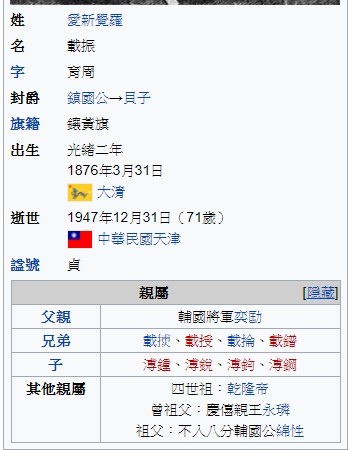 第四子溥鋼,生於民國十六年,側福晉富察氏生,妻亦為上海聖約翰大學只緣,近代基督教先驅之一載振 - 維基百科,自由的百科全書 https://bit.ly/2C4n1z2