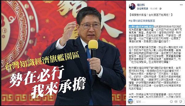 行政院盤點桃竹苗產業儲備用地,並協調水、電、交通等基礎布建,在今年2月間核定「桃竹苗大矽谷計畫」時,新竹縣長楊文科隨即強調,首要之務是請行政院盡快核定已倡議20多年的台灣知識旗艦園區(原璞玉計畫)及已禁建40年的科3期計畫,兩案也是他提出的五支箭政策,牽動新竹縣的產業發展禁建40年科3期計畫有新進展!內政部土徵審議小組今實地現勘 - 自由財經 https://bit.ly/3zNpGeh