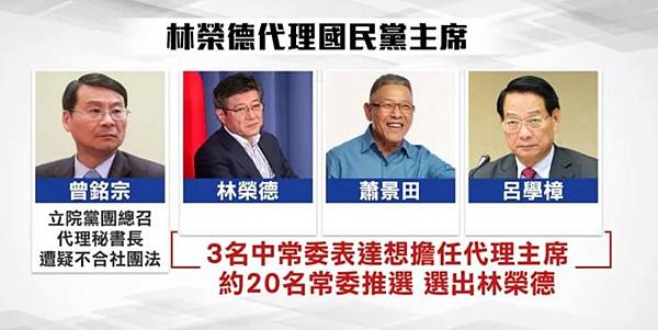 冠軍董事長林榮德現任國民黨中常委,2020年總統、立委大選,國民黨大敗,時任黨主席吳敦義率黨務主管請辭負責,原建議時任立委曾銘宗代理,但因曾當時不具中常委身分,改為代理祕書長,代理黨主席則經中常會召開臨時中常會後,由常委互推選出,最後由林榮德擔任。 冠軍建材高層涉侵占貨款逃漏稅…董娘遭聲押 董座300萬交保 | 法律前線 | 社會 | 聯合新聞網