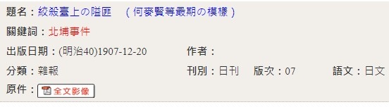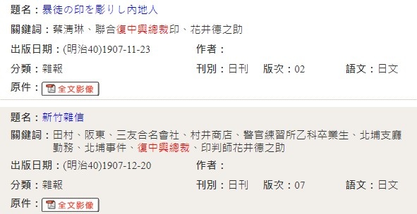 北埔事件-台灣日日新報1907年--- 漢珍知識網:報紙篇