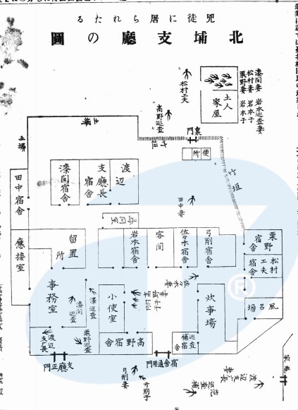 調閱台灣總督府公文類纂,在冊號01735、文號09的明治43年(1910)6月10日的『紀念碑建設ノ件』公文中,台灣總督以指令第3592號許可了由宮川保之提出的北埔事變遭難記念碑建設案,這就是五子之碑的許可文件檔案,此碑於9月2日竣工。其中第一附圖「紀念碑建設位置」圖中,清楚地繪出了大坪蕃務官吏駐在所、大坪警察官吏派出所、富山宅、ゴム苗圃等等。