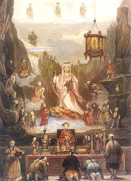 天后廟神壇 (設色版畫13.5×18cm) T. Allom 繪 W. Wetherhead製版 (約1843年)媽祖信仰與海外閩商僑居社區 https://bit.ly/32yFU6o