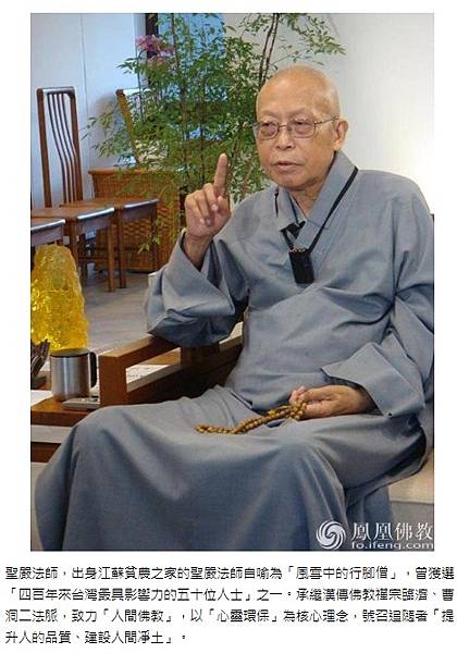聖嚴法師,民國十九年生於江蘇省南通縣,出生農家,由於從小體弱多病,聖嚴十三歲的時候,在故居狼山出家,而年輕時候的聖嚴法師,經歷過在上海寺院做過經懺佛事,民國三十八年還隨著軍隊來到台灣,而一生中兩度出家,聖嚴常常感慨自己一生顛沛流離,而『人生總是在無路中找出路,在艱辛中見悲願,生命對聖嚴來說,就是一場實踐佛法的歷程。正因為對佛法的堅持,聖嚴法師曾以三十九歲的年紀,遠赴日本東京求學,並完成他文學碩士及博士學位。之後聖嚴法師更奔波台美兩地弘揚佛法,他常常比喻自己是「風雪中的行腳僧」,走過無數的路,讓更多的人知道佛法。也正因為感嘆「佛法這麼好,知道的人這麼少』這樣單純的信念,聖嚴也在民國七十八年,創辦了法鼓山 ,而法鼓山 也在聖嚴法師的帶領下,深獲海內外各界的肯定,聖嚴法師也曾獲選為「四百年來台灣最具影響力的五十位人士」。聖嚴法師被喻為實修實學的教育家,除了創立「中華佛學研究所」、「法鼓大學」,這幾年,他也多次與科技、藝術、文化等,菁英人士對談,而聖嚴法師的貢獻,不僅僅是他在佛法領域的學養,他也以寬闊的胸襟與國際的視野,宣揚佛法