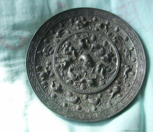 銅鏡是我國古代人日常生活中梳裝整容的實用品,已有四千多年的悠久歷史,各朝各代均有製作。到了水銀鏡問世以後,逐漸停止了製作。人們喜愛銅鏡,不但因它光面能照影,而背面的構思主題更具有藝術的感染力。古代銅鏡上有的紋飾的寓意與配置,至今仍有許多解不開的謎,如戰國山字紋鏡,漢代的規矩紋鏡,唐代的海獸葡萄鏡等。海獸葡萄鏡還竟被中外的學者稱之為"多謎之鏡"。