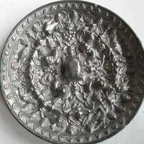 這種紋樣傳到中國後,與中國傳統的瑞獸紋相組合,被裝飾於銅鏡上,形成一種在眾人看來非常奇怪的組合。而二者的組合只在唐代出現在銅鏡上。