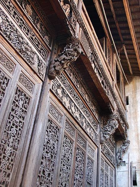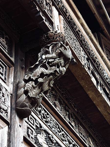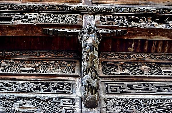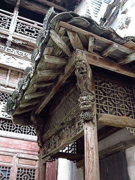 思溪延村的古建築很多都是磚木結構,磚雕多見於門楣等處,木雕多見於梁柱、窗戶、屏風等處,石雕也是古建築里的一大特色,這些雕刻的內容複雜而富有層次感,內容以祥瑞為主。