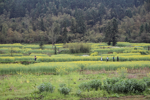 ↑ 這季節,農地裡的油菜花盛開,田園景致十分迷人